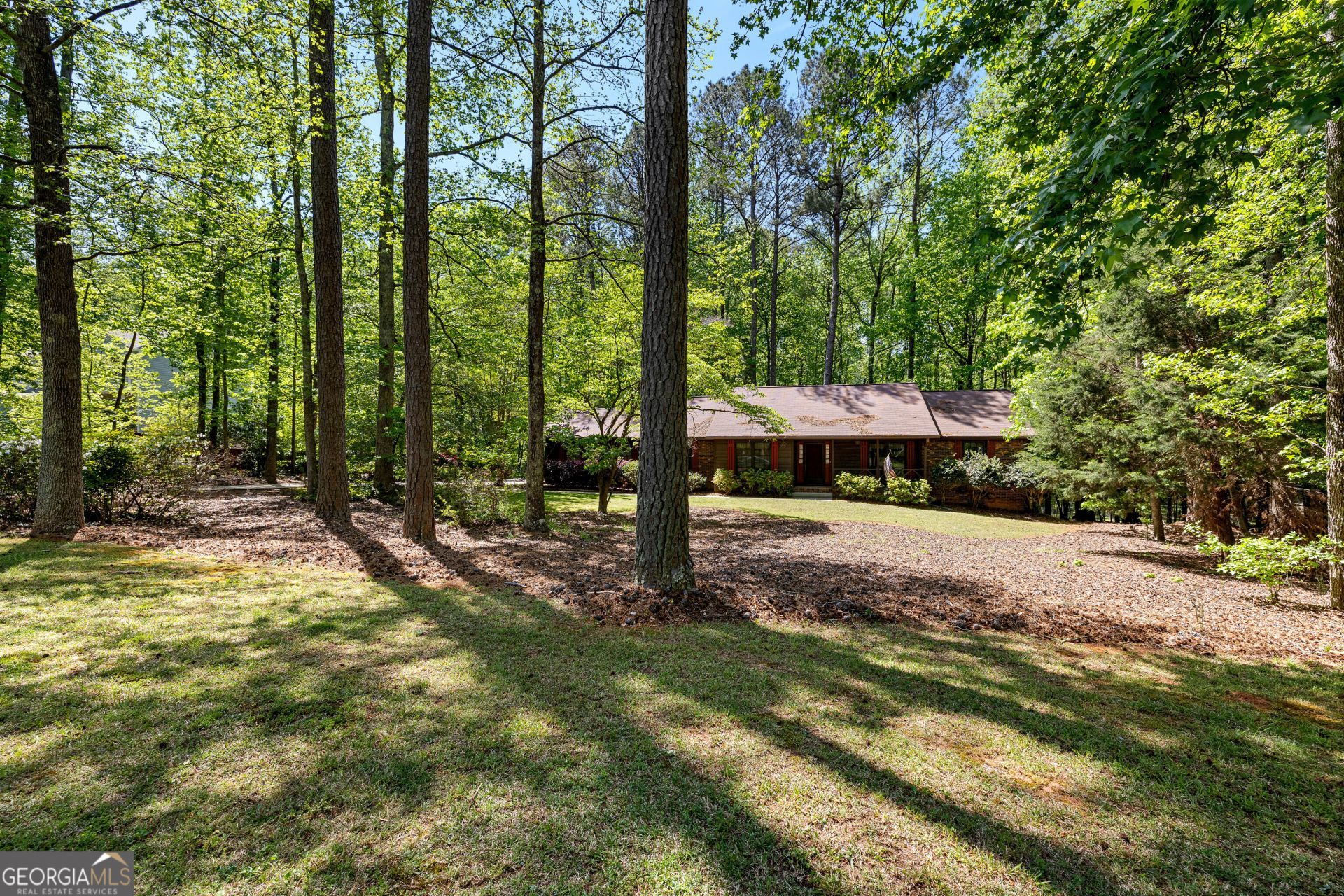 Nestled on over an acre of serene, wooded land, this charming 4- bedroom, 3 full bath ranch-style home offers the perfect blend of privacy and comfort. The main level features a dining room, living room, a den with a gas log fireplace, kitchen with stainless steel appliances, primary suite, plus 2 additional bedrooms and another full bath. The full, partially finished basement provides additional flexibility- perfect for a rec room with another fireplace, home office, or guest suite with additional bedroom and full bath. Plus tons of storage. Outside, enjoy the peaceful surroundings with mature trees and a tranquil stream that add to the property's natural beauty.