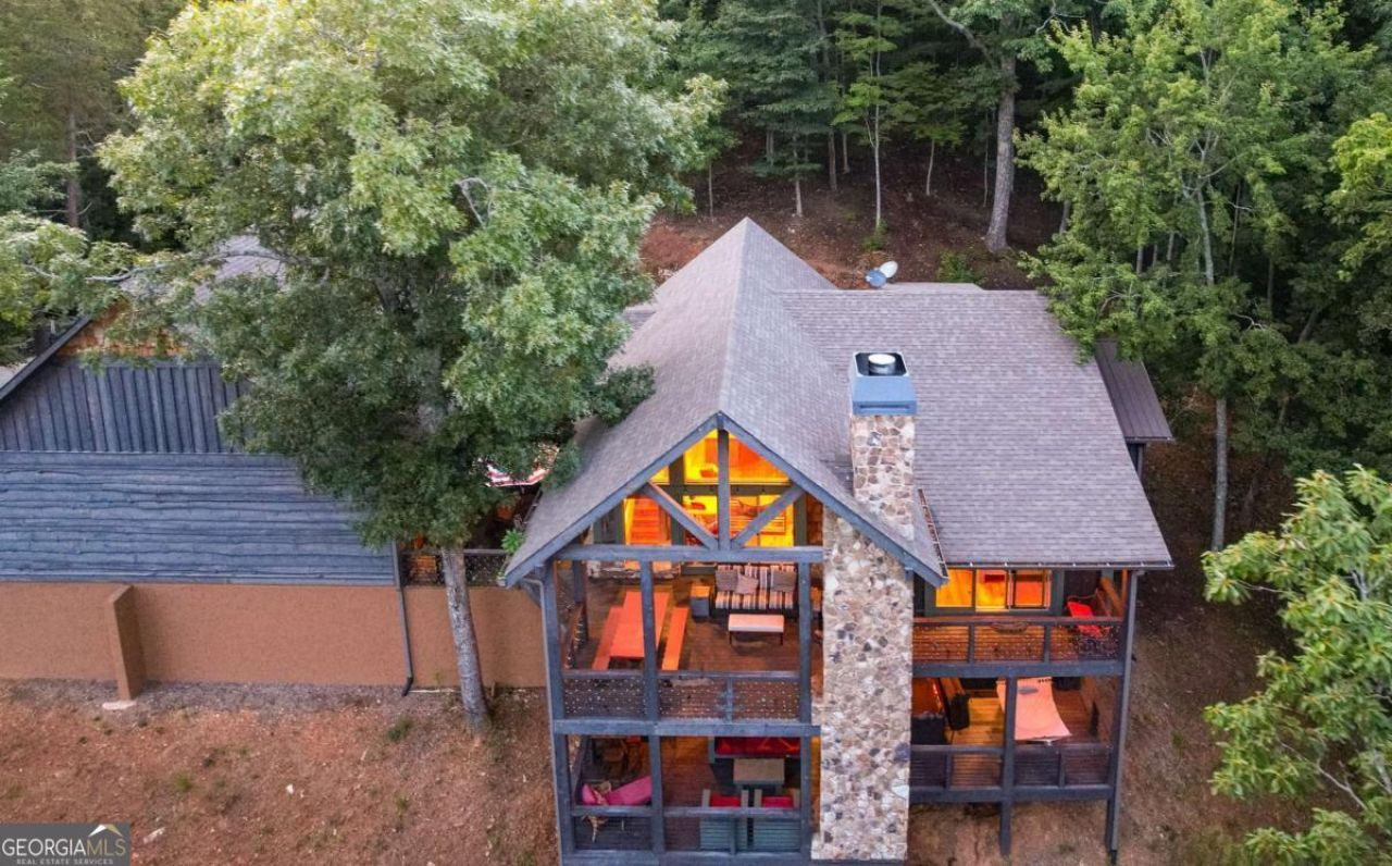 Discover a haven of tranquility where rustic charm meets modern luxury in this exquisite mountainside masterpiece. Nestled on 1.67 private acres amidst breathtaking panoramic mountain views, this custom-built Keith Sumner home showcases timeless elegance through natural stone, exposed beams, and soaring vaulted ceilings. The open-concept living space flows seamlessly into a gourmet kitchen featuring custom rock countertops and stainless steel appliances, while the primary suite offers a luxurious retreat with a stacked-stone accent wall and a spa-like ensuite bathroom.The terrace level serves as an entertainer's dream, complete with a full secondary kitchen, a cozy gas fireplace, and a dedicated game room. Outdoor living is elevated by multiple decks featuring four fireplaces, providing the perfect setting for fireside stargazing or al fresco dining. Guests can unwind in the relaxing hot tub under the stars or enjoy the fresh mountain air from the hammock and chair swing on the lower deck. Located just a stone's throw from the charming town of Blue Ridge, this home offers easy access to hiking, white-water rafting, and the historic downtown area, all while currently serving as a successful vacation rental.