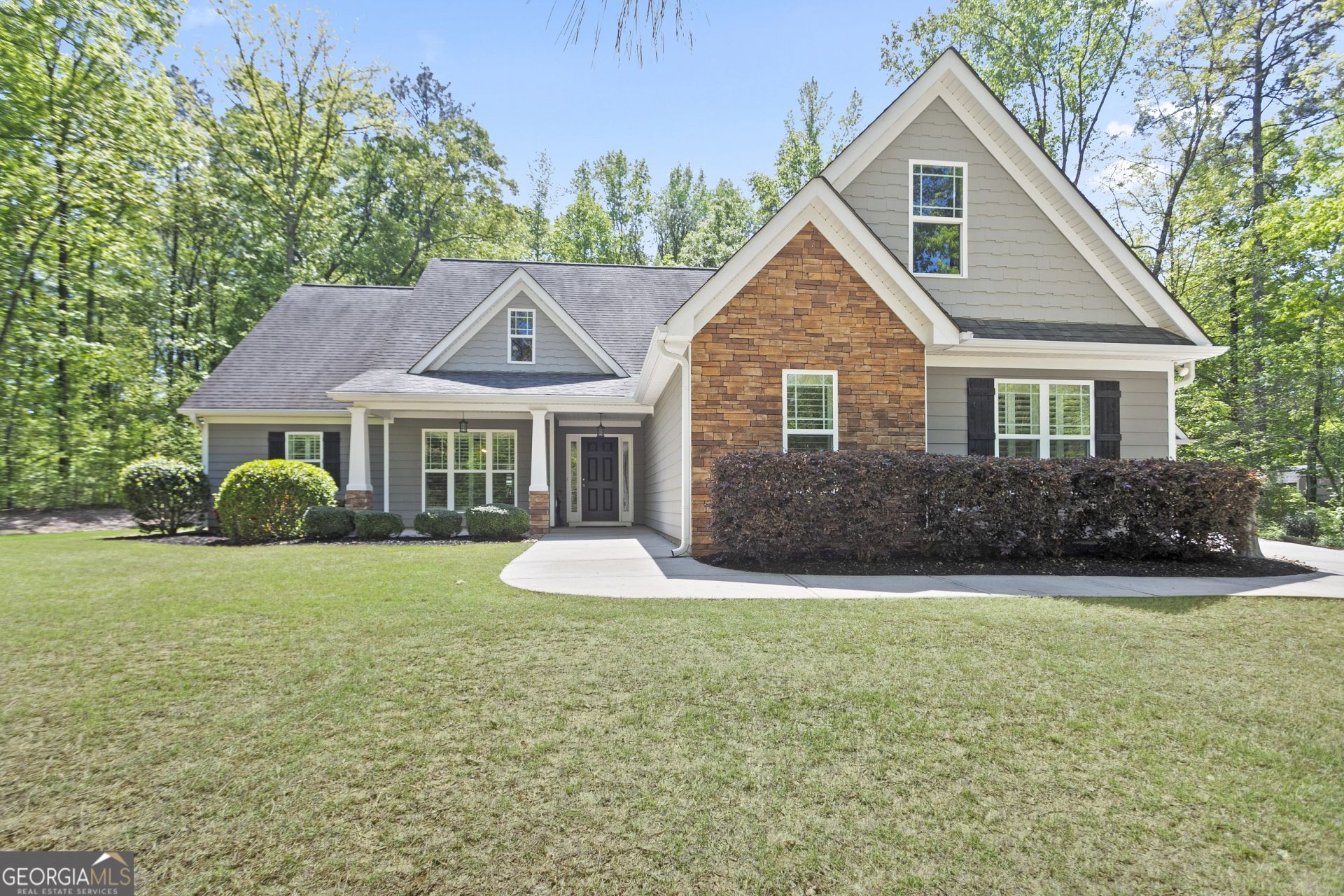 Tucked in the woods in The Brooks community, this true ranch home withjust over 1800 sq ft has 3 bedrooms, 2 bathrooms, a gorgeous private zoysia back lawn with covered porch, large semi-wooded front yard, oversized side entry attached garage, PLUS a fully finished detached workshop garage with finished storage room above. Interior features a large mud room with washer and dryer that remain with the home, cabinets/counters, and a sink to keep the outdoor messes out of the house! The kitchen has granite counters, soft close cabinets, and stainless appliances that all remain in the home. Eat in kitchen, breakfast bar, and formal dining room provide flexible options for hosting guests. Split bedroom layout makes this single-story home super private. Primary bed and bath are roomy with separate shower, tub, toilet room/water closet, and walk in closet. The two secondary bedrooms share a second full bath on the other side of the home. Professionally landscaped exterior provides lots of options for outdoor enjoyment. Covered front porch and covered back porch with stone patio. Stone walkway to the detached garage gives you a mud-free path in and out of this extra-clean workshop. Fully dry walled with windows, auxiliary lighting, and more plugs than you could ever want make this space perfect for a workshop or recreation space. Pull down stairs reveal a dry walled storage room. This quaint community has a neighborhood lake accessible to all residents, is close to I-85 and convenient to both downtown Newnan and downtown Senoia!